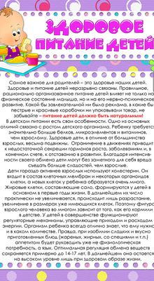 Здоровье детей невозможно обеспечить без рационального питания, которое является необходимым условием их гармоничного роста, физического и психического развития, устойчивости к действию инфекций и других неблагоприятных факторов внешней среды. Кроме того, правильно организованное питание формирует у детей культурно-гигиенические навыки, полезные привычки, так называемое рациональное пищевое поведение, закладывает основы культуры питания.